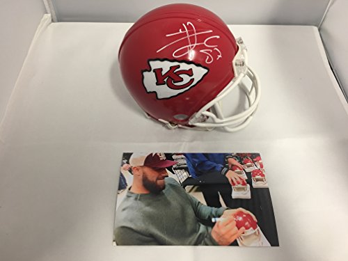 Travis Kelce Signed Autographed Kansas City Chiefs Mini Helmet COA Card & Hologram W/Photo From Signing