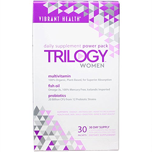 -. Binding : Health and Beauty -. Brand : Vibrant Health -. IsAdultProduct : 0 -. Label : Vibrant Health -. Manufacturer : Vibrant Health -. ProductGroup : Health and Beauty -. ProductTypeName : HEALTH_PERSONAL_CARE -. Publisher : Vibrant Health -. Studio : Vibrant Health -. Title : Vibrant Health Trilogy for Women - A Multivitamin, Fish Oil, and Probiotic