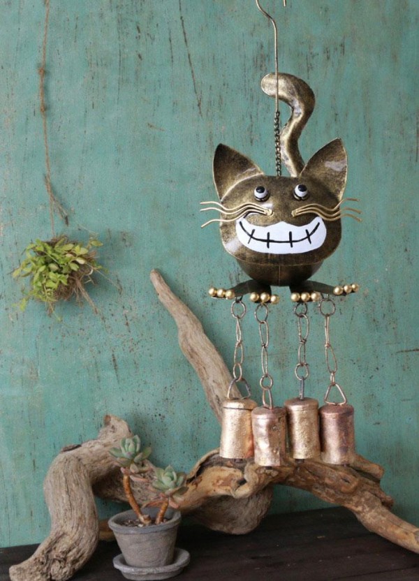 手作り感のある色合いが魅力的なネコのブリキ製ベルです。