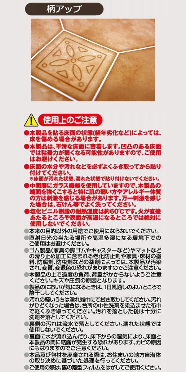 のりを使っていないのでキレイにはがせますが、ズレ防止機能が付いているのでズレません。表面の強度が優れているのでキズや沈みに強く、キャスターもスイスイ動きます。貼りやすい大きさにはさみで簡単にカットする事ができます。重ね貼りすることもできますので、約1cm重ねて貼ってください。 |