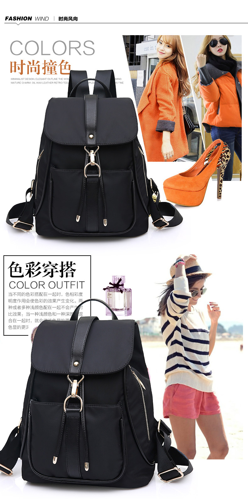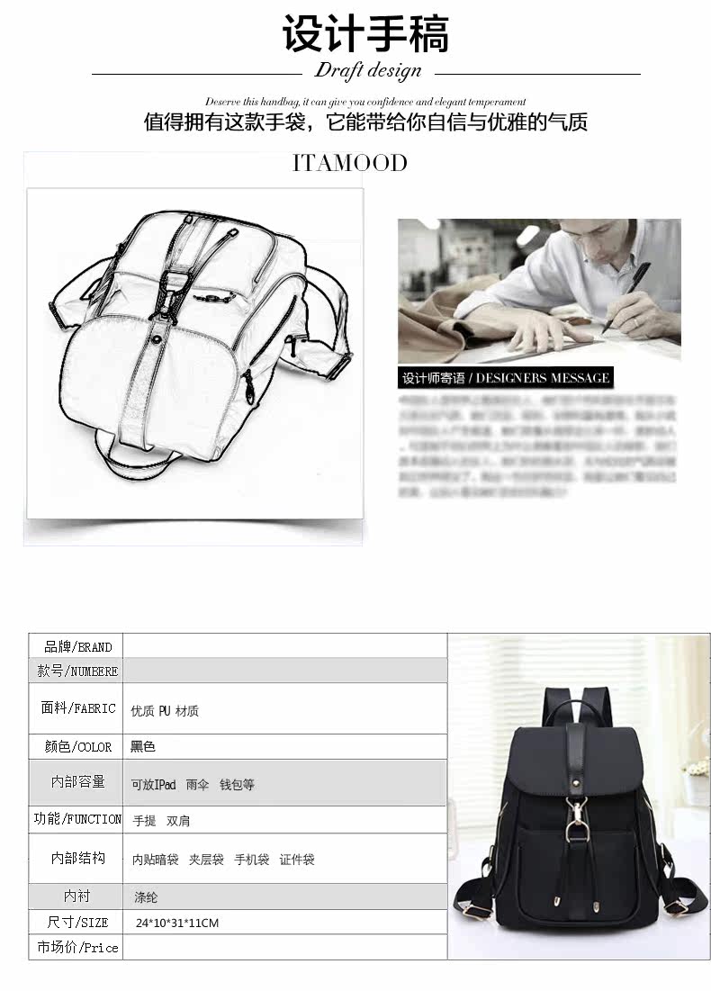 双肩包女韩版学生书包新款潮时尚百搭包包女士背包牛津布女包