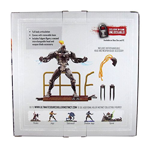 -. Feature : 10 points of articulation incudling the head, shoulders, elbows, waist, hips, and knees / Fulgore comes with 2 weapon blades, and an interchangible second head / Fuglore is the biggest 6" scaled figure in the line, and has the biggest base. Which is styled after his in-game stage / Over 120 different paint decos, and figurine base is modled off of Fulgore's in game stage / Comes with an EXCLUSIVE code for a tenth in-game color for Killer Instinct on Xbox One.