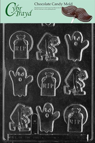 Cybrtrayd Life of the Party H010 Halloween Assorted with RIP Chocolate Candy Mold in Sealed Protective Poly Bag Imprinted with Copyrighted Cybrtrayd Molding Instructions