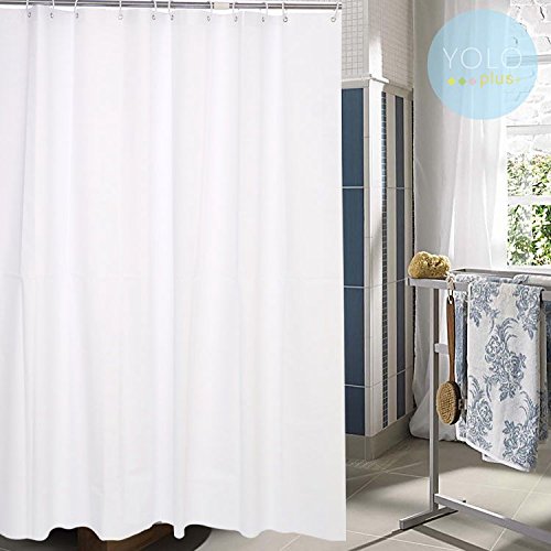 - SUPERIOR QUALITY, DURABLE SHOWER CURTAIN: YOLOPLUS shower curtain is made from expertly chosen and thoroughly tested polyester fabric, which is made to withstand moisture-rich bathroom environments.The white color is sure to compliment any bathroom setting or bathroom color scheme, instantly updating any bathroom deco theme and providing an unparalleled, upscale look.
