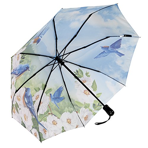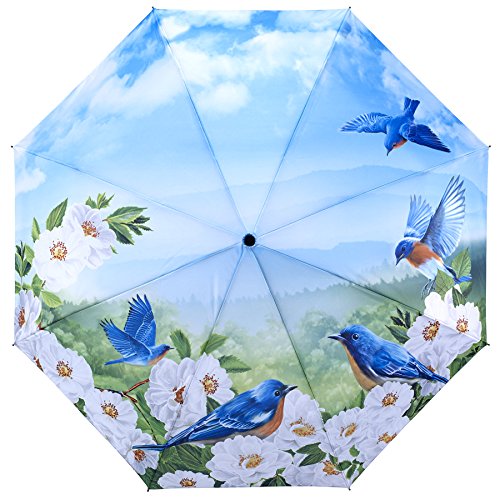 (GALLERIA ENTERPRISES, INC.)/Accessories/Umbrellas/DIRECT FROM USA/Galleria Blue Birds Auto-Open/Close Extra Large Portable Rain Folding Umbrella for Women, 48-in...