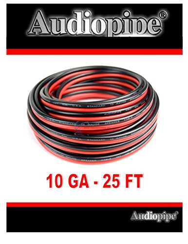 -. Binding : Electronics -. Brand : Audiopipe -. EAN : 0784644618936 -. Feature : Audiopipe 2 Conductor Red/Black Speaker Wire 10 Gauge - 25ft Wire / THIS IS NOT AWG AMERICAN WIRE GAUGE / Stranded 2 Conductor Copper Clad Aluminum / Use this with any 12 Volt or home project / Rated 6 to 80 Volts -. Label : Audiopipe -. Manufacturer : Audiopipe -. Model : LYSB00J35DPNC-ELECTRNCS -. MPN : Ground 12 Volt Hook Up Lead LED -. PackageQuantity : 1 -. PartNumber : Ground 12 Volt Hook Up Lead LED -. ProductGroup : Speakers -. ProductTypeName : CABLE_OR_ADAPTER -. Publisher : Audiopipe -. Studio : Audiopipe -. Title : Audiopipe 25' Feet 10 GA Gauge Red Black 2 Conductor Speaker Wire Audio Cable -. UPC : 784644618936