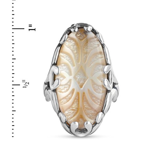 -. Binding : Jewelry -. Brand : Relios Jewelry -. Department : womens -. Feature : Genuine Yellow Mother of Pearl, Crystal Quartz, and .925 Sterling Silver / Measures approximately 1-1/8" long x 3/4" wide / See Ruler View for accurate sizing. Silver may tarnish over time. / Handcrafted in America with lifetime warranty on all jewelry / Sterling silver encases a carved yellow mother of pearl and rock crystal quartz doublet. -. Label : Relios -. Manufacturer : Relios -. ProductGroup : Jewelry -. ProductTypeName : FASHIONRING -. Publisher : Relios -. Studio : Relios -. Title : Relios Sterling Silver Yellow Mother of Pearl Crystal Quartz Ring