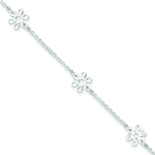 -. Title : Sterling Silver Polished Flower Chain Jewelry Anklet 9" With 1" Extension