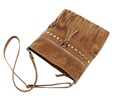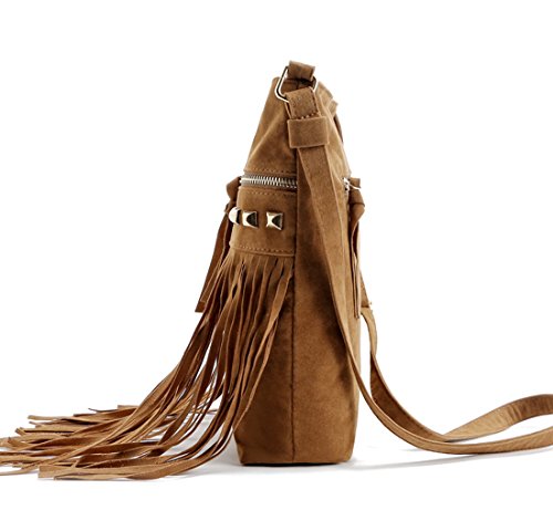RARITY-US Women Faux Suede Crossbody Shoulder Bag Fringe Weave Tassel Messenger Handbag