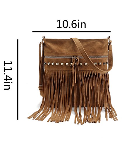 - HIPPIE STYLE: Exquisite workmanship with fringe tassel & rivets design, this fashion bag is an ideal gift for families, girlfriend and friends.
