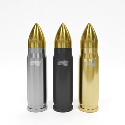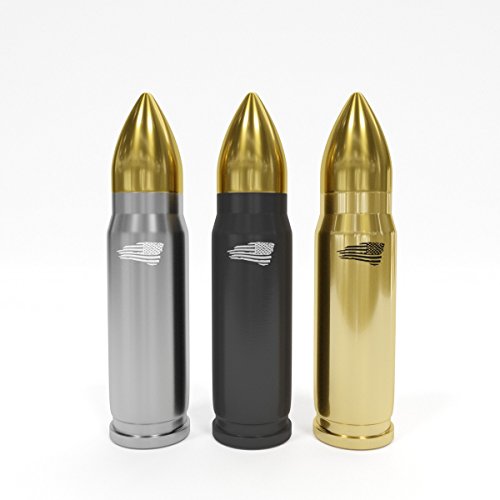 BattleRaddle Bullet Combat American Flag Coffee Tea Cup Mug Stainless Steel Thermos Tumbler 3 Colors (Black, Brass, Silver)
