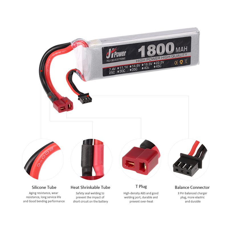 This high quality 7.4V 1800mAh 25C 2S LiPo battery is just designed for RC super fans. It's suitable for RC oil powered car truck drone boat airplane, which is a very good and economical choice.