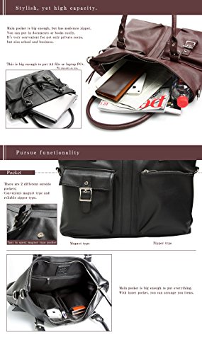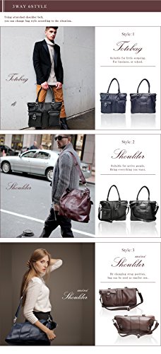 -. Feature : Material: PU Leather / 3-way: Shoulder/ Tote/ Mini-Shoulder bag / Pockets: 2x Outside pocket, 2x Inside pocket, 1x inner zipper, 2x Pen holder / Size: 13" x 17.7" x 4.3" (without handle), Shoulder strap: 25.6-45.3", Weight 2 pounds / Accessories: Shoulder strap, Special bag