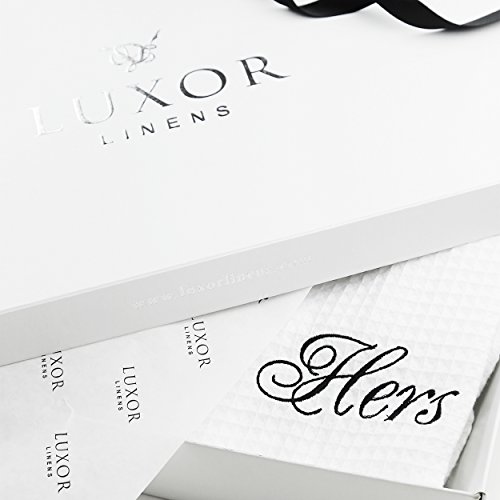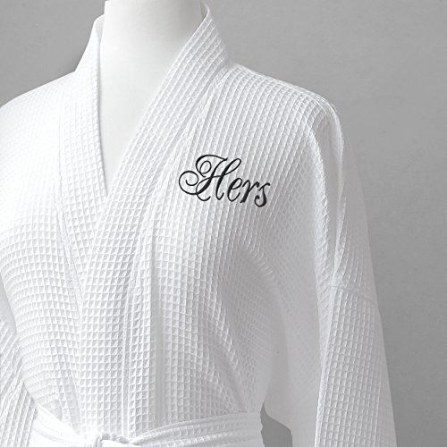 Same-Sex Couple's Waffle Weave Bathrobe Set 100% Egyptian Cotton-Unisex/One Size Fits Most-Spa Robe,Luxurious,Plush,Elegant Script Embroidery-Perfect Wedding Gift-Hers/hers with Gift Packaging