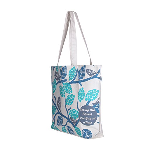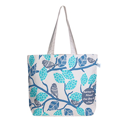 EcoRight Reusable 100% Cotton Canvas EcoFriendly Large Tote Bag Printed "Sparrows" (Natural) - 0201G02