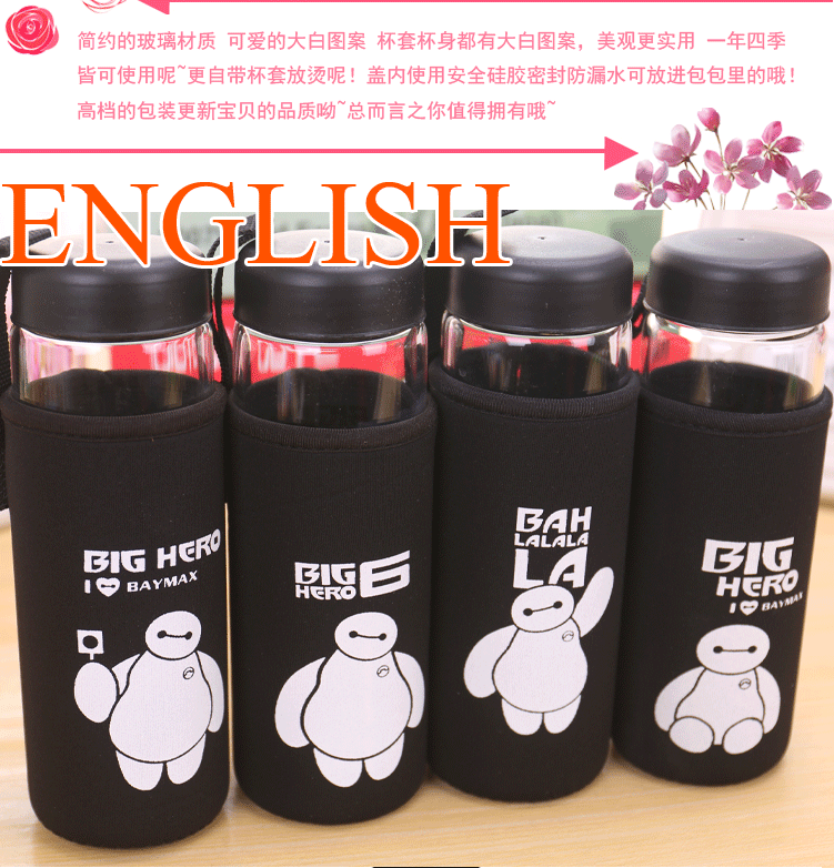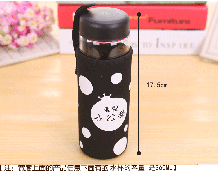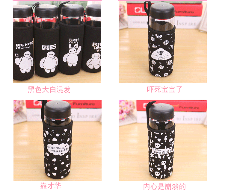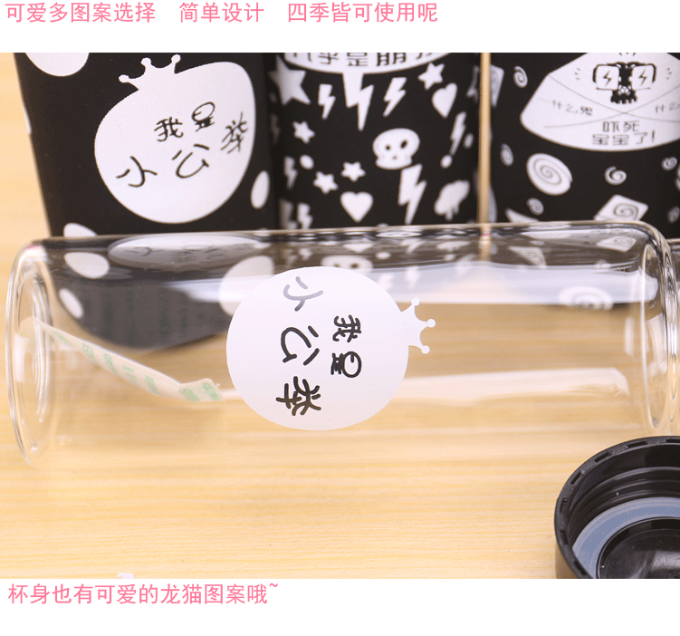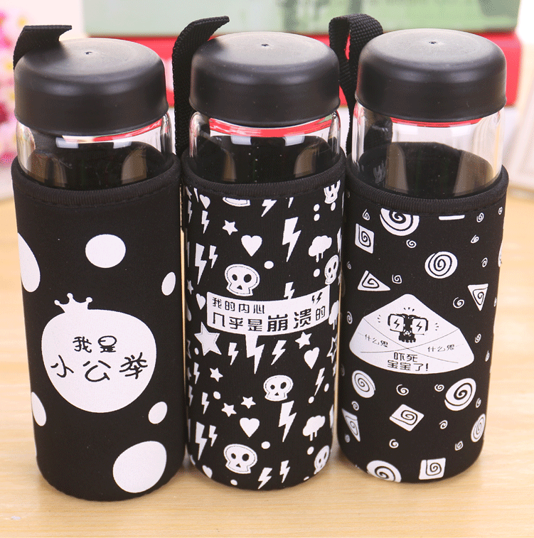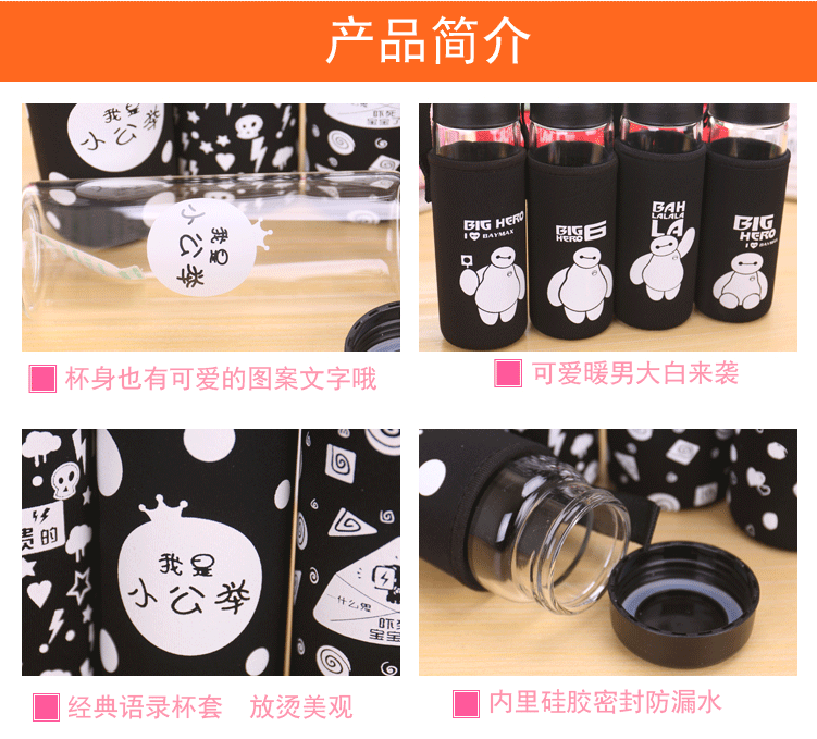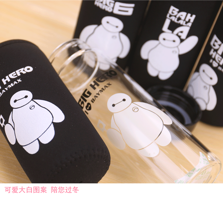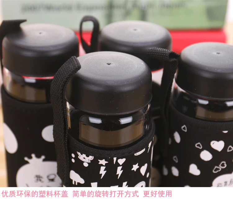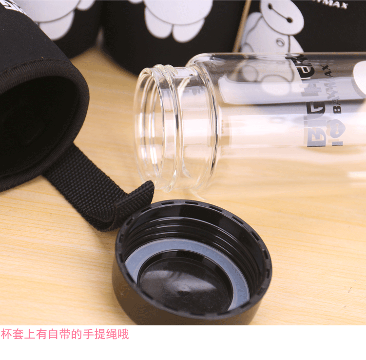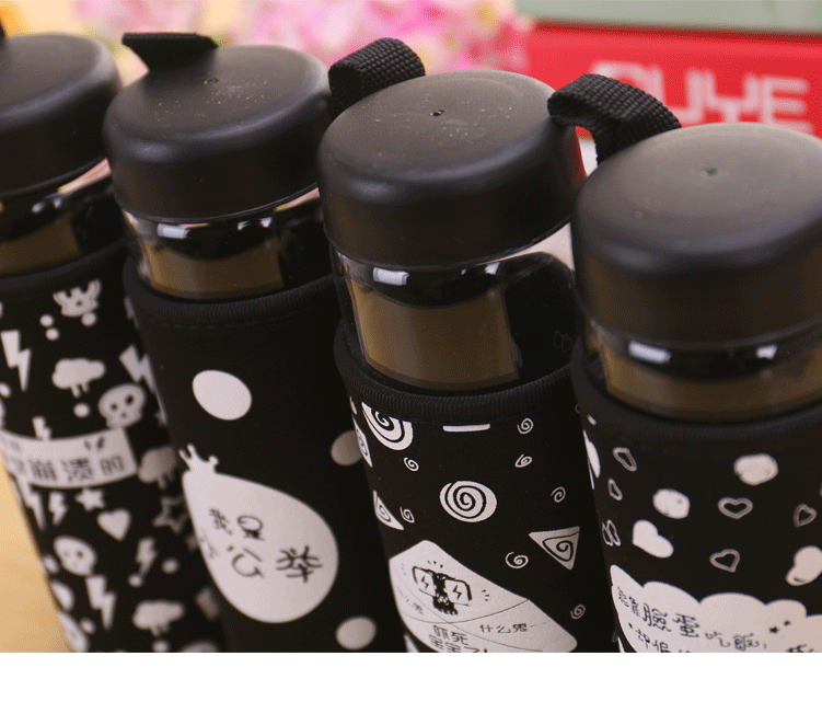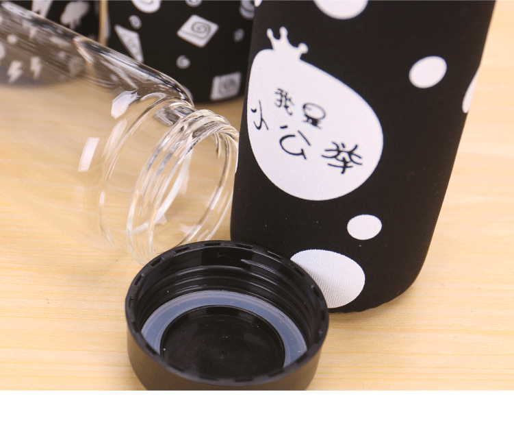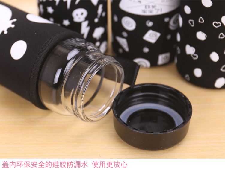 大白单层玻璃杯带盖便携泡茶杯子学生隔热杯套加厚防漏水杯