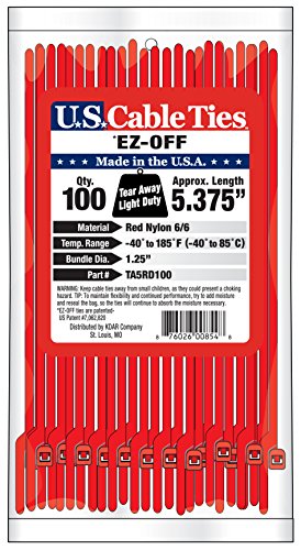 US Cable Ties TA5RD100 5.4-Inch EZ Off Tear Away Ties, Red, 100-Pack