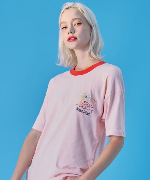 와이케이(WAIKEI) 핫썸머 자수 링거티셔츠_핑크