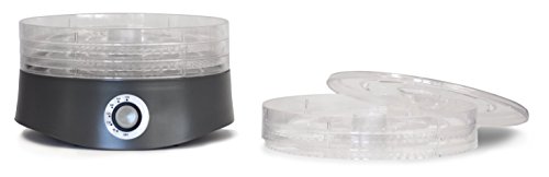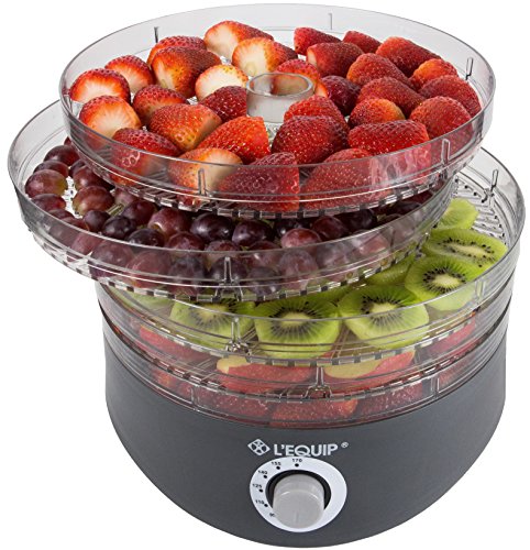 The L'Equip Snacky is the perfect food dehydrator for beginners. Each tray can be stacked at a lower height for smaller storage and thin slices of fruit and food. Rotate each tray to seat them higher for thick slices. The product guide walks you through the simple basics of dehydrating food.