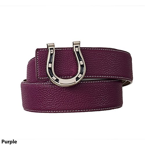 Studio : ENGLISH RIDING SUPPLY Publisher : ENGLISH RIDING SUPPLY Binding : Misc. Product Description Ovation Horseshoe Belt Bring some luck to your outfit! You can wear it in or out of the saddle. This ladies' belt is available in fun fashionable colors. The leather is 1 1/2" wide and features a sliding silver horseshoe buckle. The width of the belt with the buckle is 2". Note: to determine your belt size, add 2" to your breech size. Features: Versatile Fashionable Fun Sliding silver horseshoe buckle 0