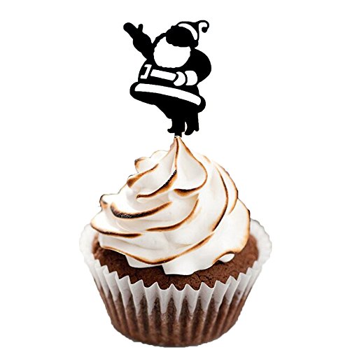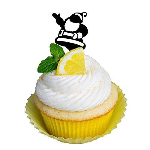 Ecape Cupcake Toppers for Christmas Party Cupcake Decoration Ideas of Santa Claus Set of 8 Acylic Black