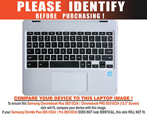 -. Feature : Made for the Samsung ChromeBook Plus XE513C24 , Pro XE510C24 (12.3" screen) laptop only. Device NOT included. / Please refer to the "Identify" image on this listing to ensure this skin will fit your device. / Durable, high quality adhesive vinyl stickers; this product is NOT A HARD COVER or made of rubber, silicone, gel, or plastic. / Image colors may vary depending on your monitor settings. / Easy to apply without any liquids / solution. To remove, simply peel it off slowly with your bare hands, leaving behind no sticky residue!
