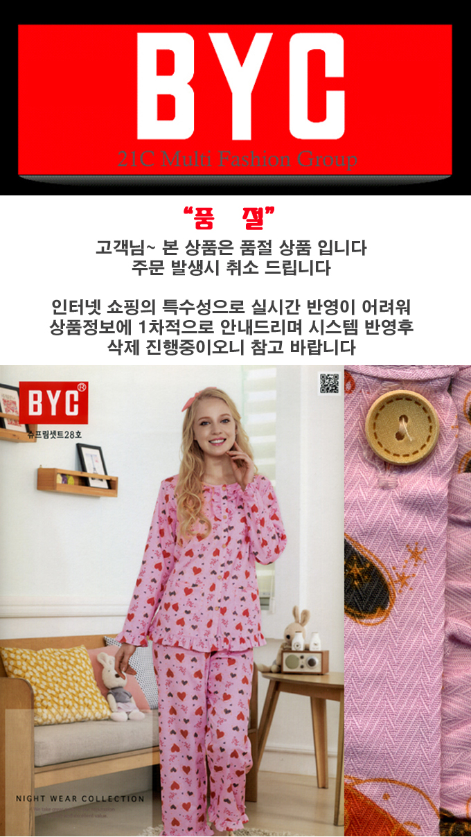 만족,즐거움,감각을 소비자에게 전달하는 BYC 브랜드 잠옷 입니다