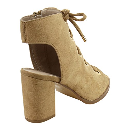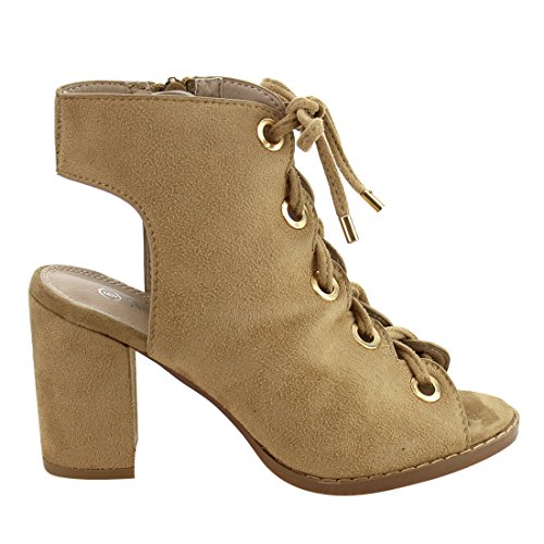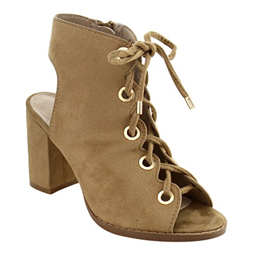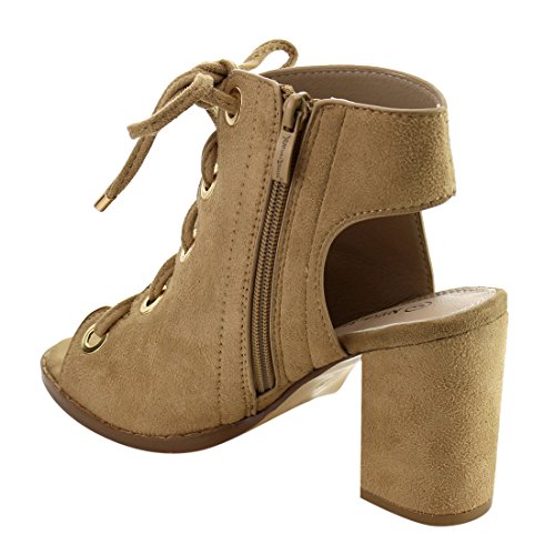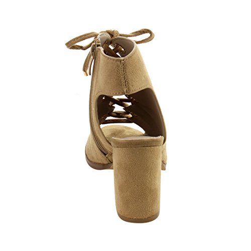 Nature Breeze FG92 Women's Lace Up Criss Cross Block Heel Sandals