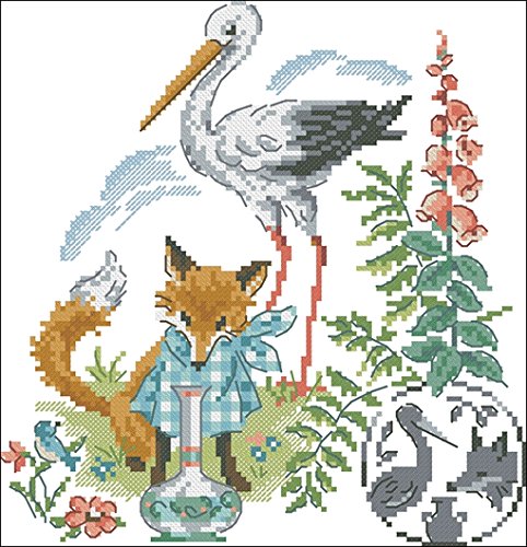 원본상품명: A fox and Crane イソップ寓話 キツネとツル クロスステッチ 刺?キット世界名作劇場 世界のおとぎ話 14カウント白 31cm * 31cm