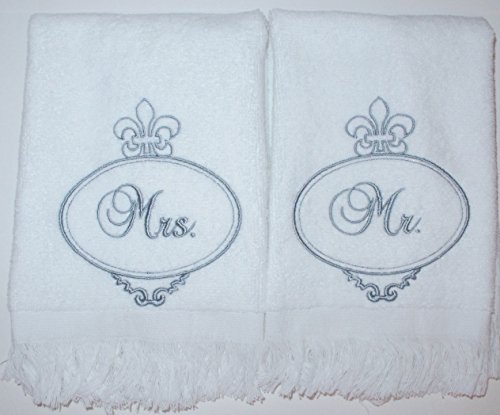 (OXFLORD)/Bedding Bath/Bath/DIRECT FROM USA/MR MRS TOWEL SET (SILVER) EMBROIDERY ~ WEDDING GIFT