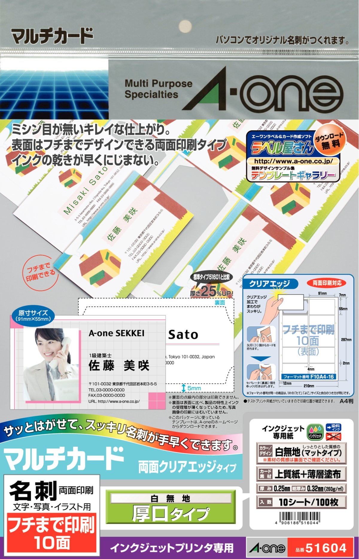 -One to (A-one) multi-card inkjet printer special paper double-sided clear edge type plain white Heavyweight A4 size borderless printing 10 sided business card size 10 sheets (100 sheets) 51 604 (japa