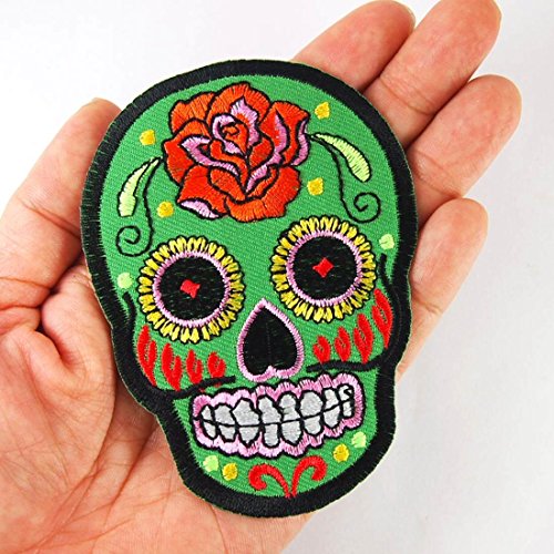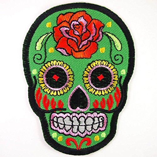 Green Rose Mexican Sugar Skull Embroidered Iron On Patches # WITH FREE GIFT#