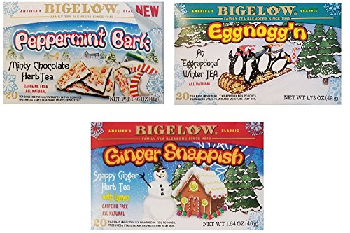 -. Title : Bigelow Holiday Flavors Tea Bundle - 3 Items: 1 Box each: Eggnogg'n, Ginger Snappish, and Peppermint Bark Flavors
