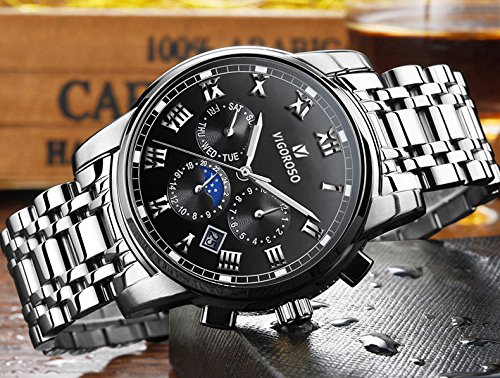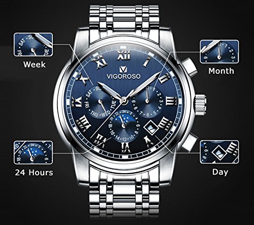 -. Title : VIGOROSO Men's Business Quartz Analog Date Waterproof Luxury Stainless Steel Wrist Watch