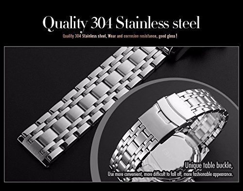 -. Feature : Watch featuring logo at 12 o'clock, luminous hands, three subdials with week, month, and moon directions,analog display. / High quality quartz movement,316L high quality stainless steel case and butterfly clasp,easy to wear and comfortably. / High hardness mineral crystal, 42 mm case diameter. / Waterproof of 50M(165 feet), withstands rain and splashes of water, but not hot water showering. / It's a great gift for family, friends or teacher.Suitable for all types of people.
