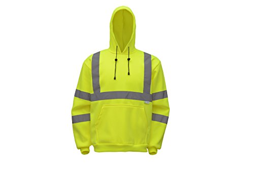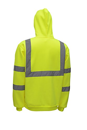 CJ Safety CJHVSS3003 ANSI Class 3 High Visibility Hoodie Long Sleeve Safety Fleece Pullover Sweatshirt (Large, Green)