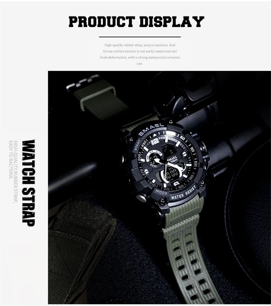 LED Watch Date Display Function:Fashion Mens Dual Display Watches Swimming
