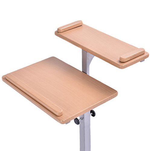 -. Feature : It Has Two MDF Tops, The Height Of Which Can Be Adjusted. / It Can Efficiently And Safely Handle The Whole Frame Of A Laptop Computer, Giving Its User An Easier Time When Tapping At The Keyboards. / At The Same Time, It Can Also Be Used For Other Purpose Like: Laptop Table, Reading Table, Dining Table. / Three Swivel Casters Glide Over Flooring And Carpeting For Easy Maneuverability, And The Two Locking Casters Offer Full Control.