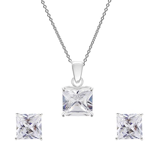 -. Title : Silverly Women's .925 Sterling Silver Square Cubic Zirconia Studs Earrings Necklace Set, 46 cm