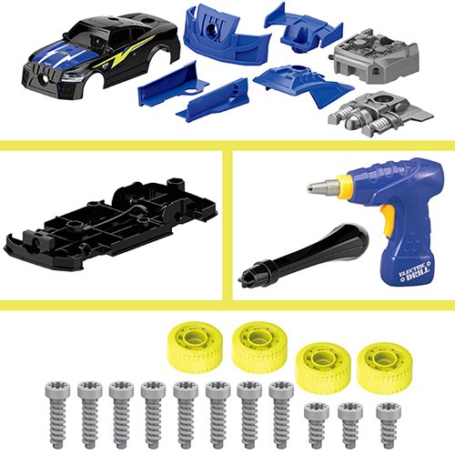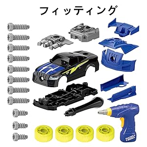 ⇒達成感を与える ドリルでねじを締めるということを覚え、少しずつ組み立てることができるようになります。バラバラのパーツから完成品になる際、きっと達成感を感じるでしょう。 | ⇒物の構造を理解する ドリルを使い、ねじで留め、ねじを外し、部品をつけ、分解し、組み上げ、そして車を走らせます。何度も繰り返して遊んでいるうちに物の構造が少しずつ理解できるようになります。 | 自由に組み替え可能です、お子様は自分の手で自分の作りたいオリジナル作品を出来ます、思いのままに様々な作業車などの想像物を作ることで、無限な可能性は子供自分で広げる。 |
