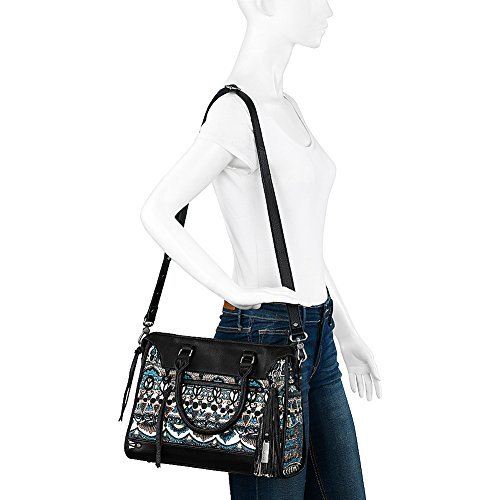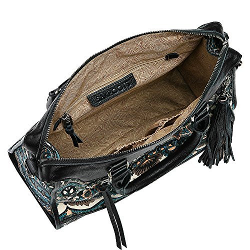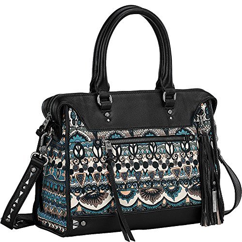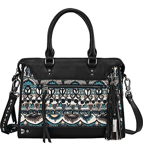 Take your fashion to work with this cool and sophisticated Artist Circle Seni Satchel. Made of leather and textile. Zipper closure. Dual rolled carrying handles with detachable, adjustable crossbody strap. Exterior front and back zip pockets. Signature logo embossed detail in back. Protective metal foot base. Lining made of polyester. Interior back-wall zip pocket. Two interior slip pockets. Imported. Measurements: Bottom Width: 10 in Depth: 3 1⁄2 in Height: 11 in Strap Length: 35 in Strap Drop: 17 in Weight: 1 lb 4.4 oz This product may have a manufacturer's warranty. Please visit the manufacturer's website or contact us at warranty@support.zappos.com for full manufacturer warranty details.Feature