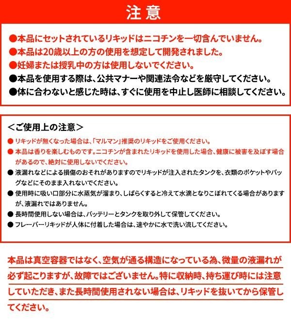 | 成分 | 日本製フレーバーリキッド:グリセリン、エタノール、香料 |