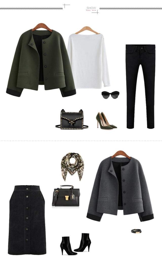 トレンド シンプル ショート丈 ダウンショルダー ジャケット スリム 秋冬 上品 S M L XL