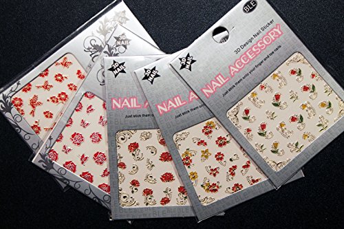 ♥ 3D NAIL ART STICKERS: 5 Sheets of staining designs as pictured. Bright and colorful!