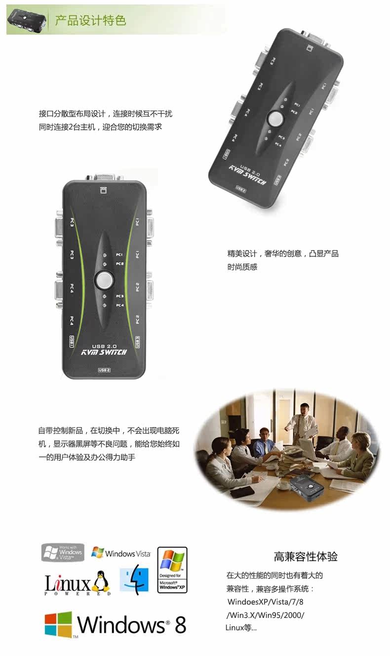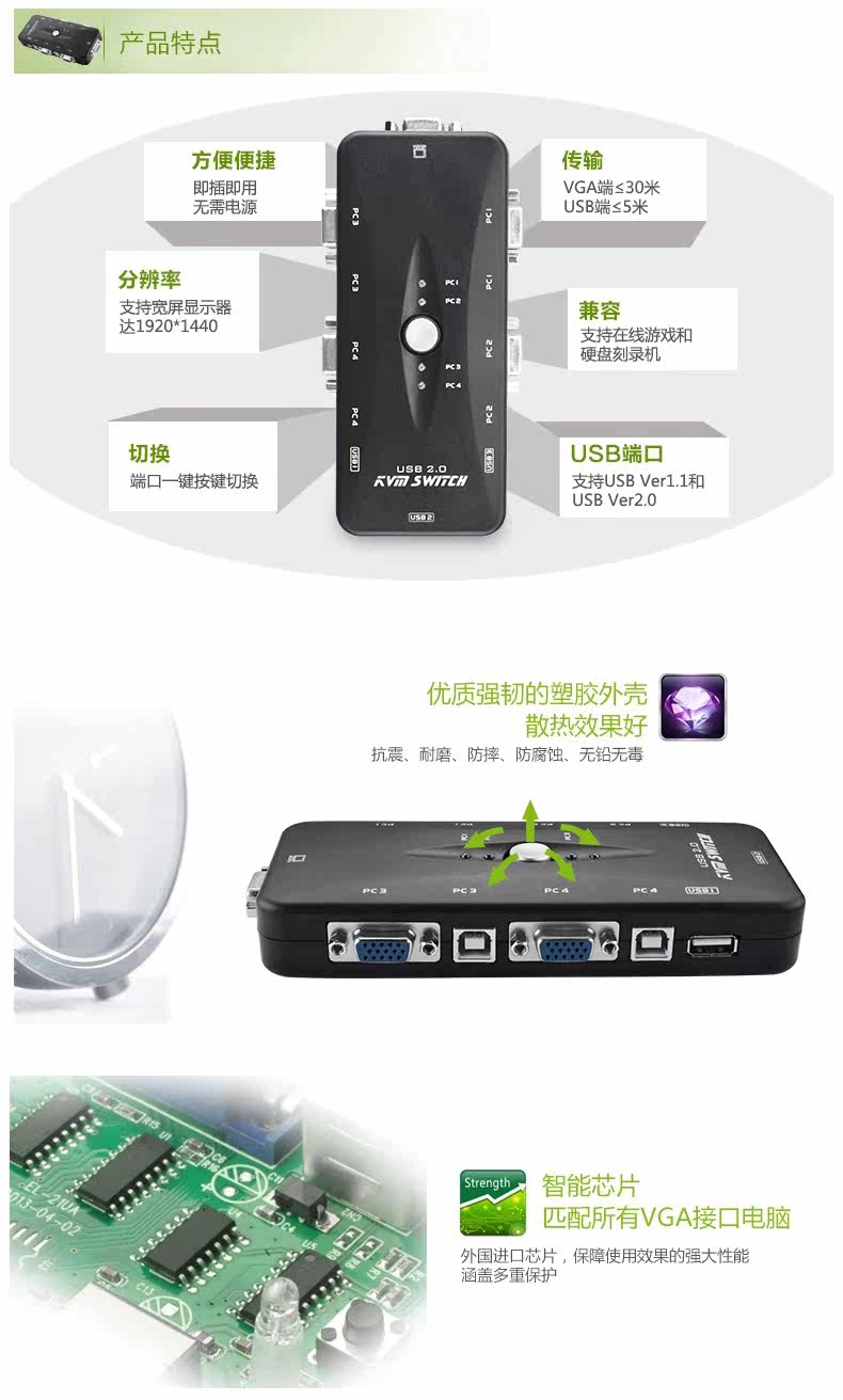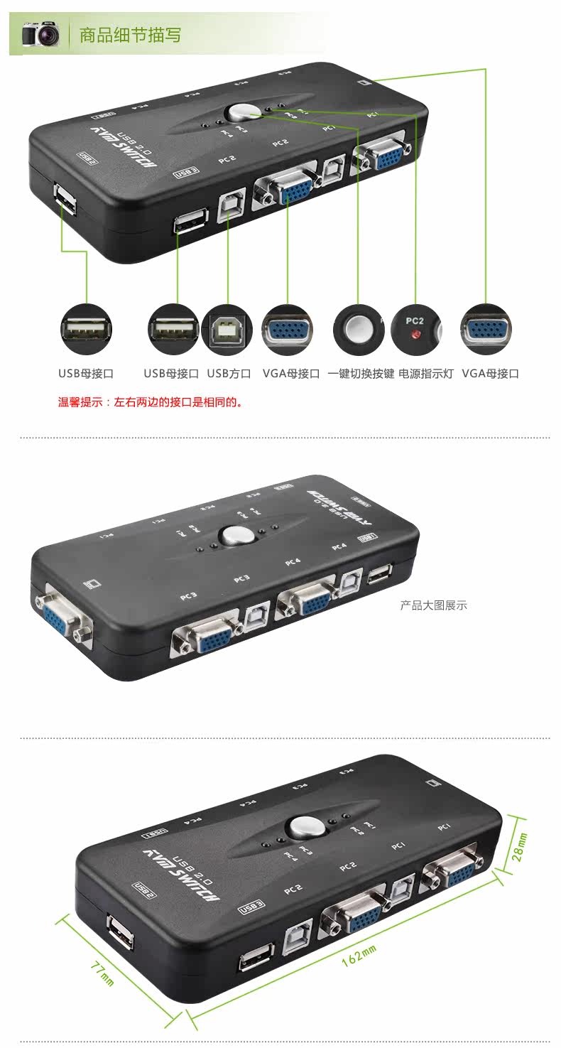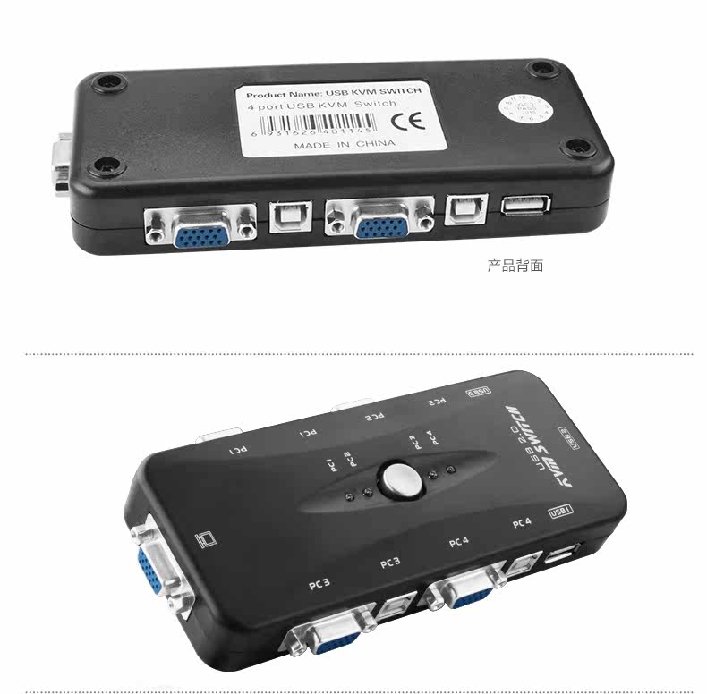 视频切换器 四台主机连接 一台显示器 手动切换