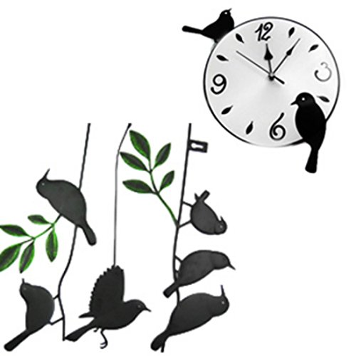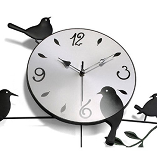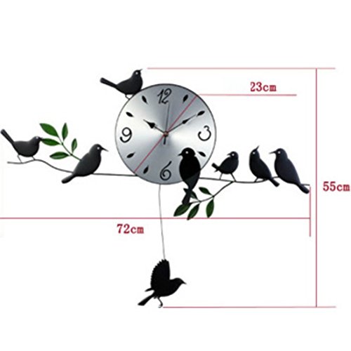 - Feature : Bird themed metal wall clock / Metal pendulum / A perfect decorative clock for any living room, bedroom, studio or cafe / Powered by 2 AA battery (not included), no cables or wiring is needed / Size: 72 x 55 cm / 28.8 x 22 inch (L x W); Dial: 23 cm / 9.2 inch