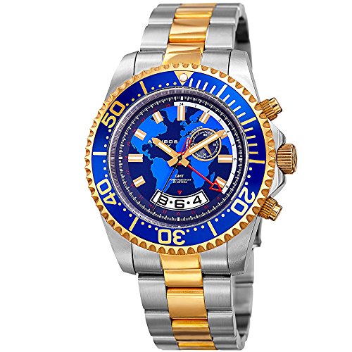-. Title : Akribos XXIV Men's Multi-Function Two-Tone Stainless Steel Case with Blue Globe Design Dial and Two-Tone Bezel on Two-Tone Stainless Steel Bracelet Watch AK955TTG