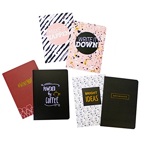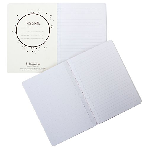 Studio : Fitlosophy, Inc Publisher : Fitlosophy, Inc Binding : Sports Product Description The Fitlosophy notable journals provide the perfect blank space for bright ideas that come in the middle of night, Thoughts inspired by sips of coffee or wine, and jotting down goals and to-do lists. Each set includes two themed blank notebooks for journaling, or to use at work, school, and home. With dot-grid pages on the left, and Plain lined pages on the right, there is plenty of space for writing, planning, drawing, and other creative notes. The pages are perforated for easy removal from the notebook. Each Journal has 40 pages, for a total of 80 pages per set. Available in three fun cover themes: bright ideas/noteworthy, powered by coffee/wine not, and write it down/make it happen. The Fitlosophy notable journals measure 6.75 x 4.75 x 0.13 inches, with two journals in each set. 0