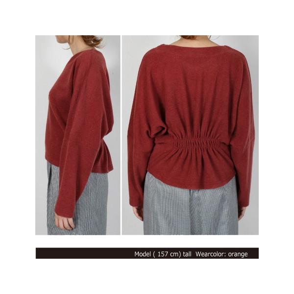 ふんわり軽くて暖かい♪人気のアルマニ起毛トップス!!バッグギャザーが今年らしいシルエットと、スタイルアップを叶えてくれる♪【サイズ】 着丈:F50B54cm、バスト:93.5cm、裄丈:66cm、袖口:12cm、裾巾:50cm 【素材】 ポリエステル95% ポリウレタン5%