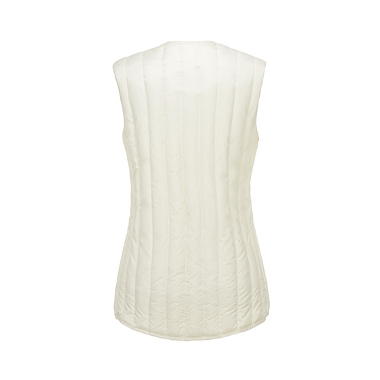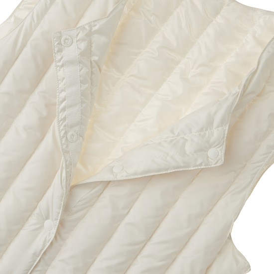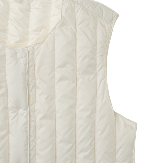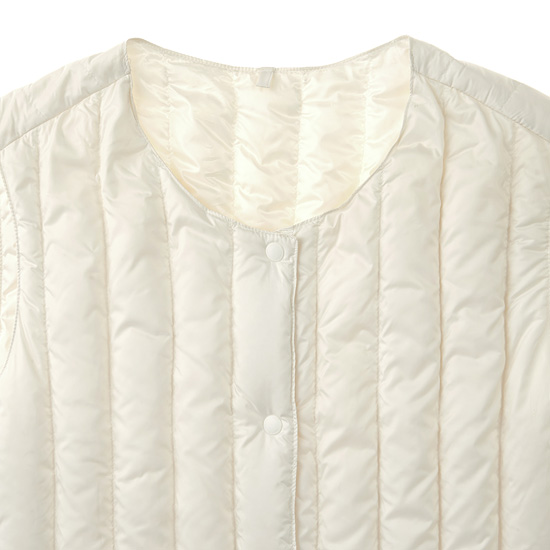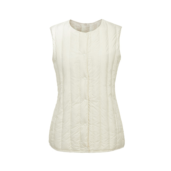 - 거위 솜털 90%를 사용하여 경량함과 보온성을 높인 여성 에어 구스 다운 베스트.